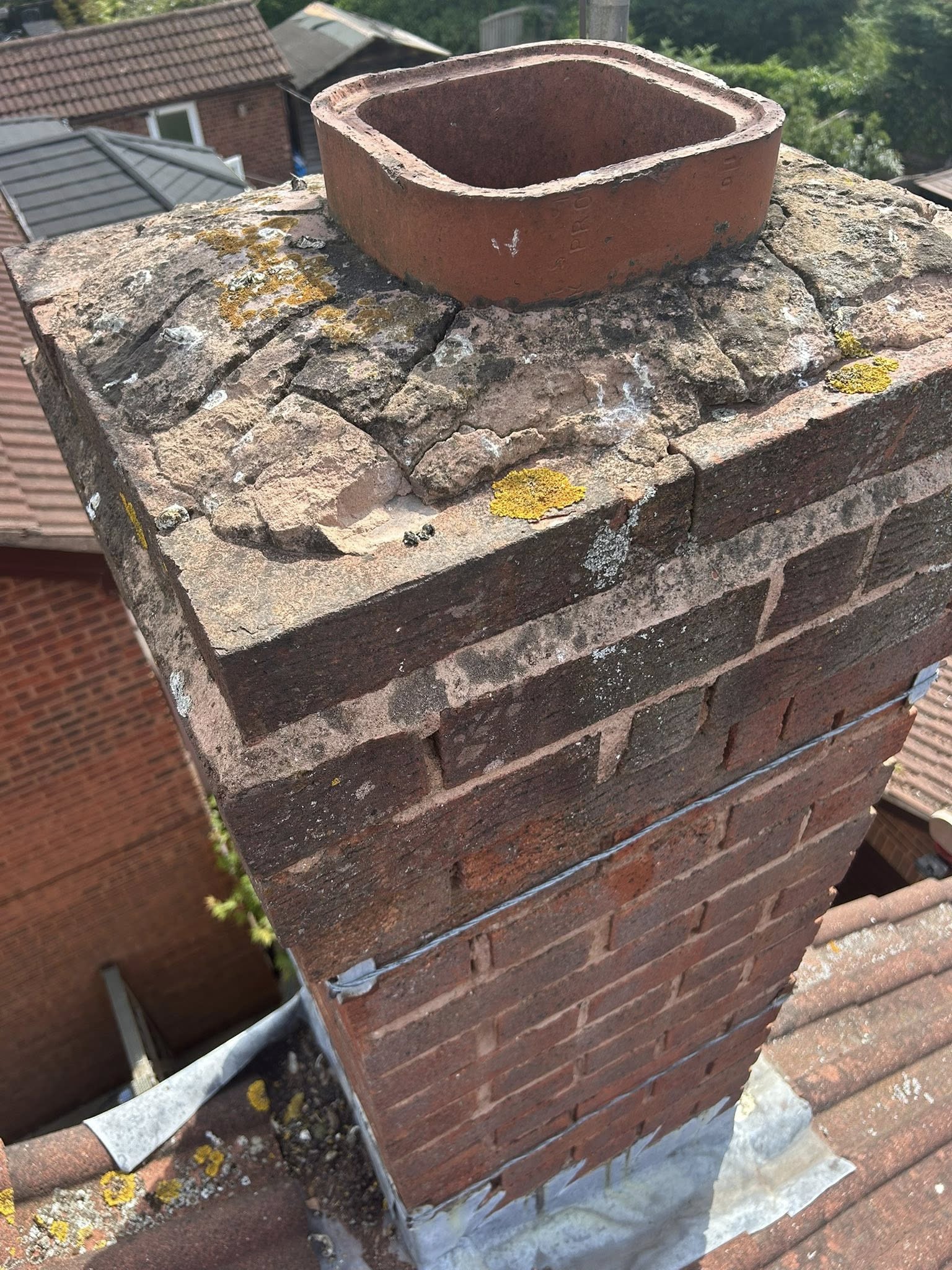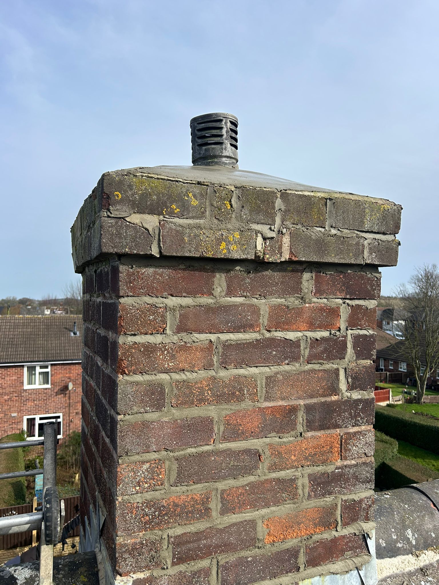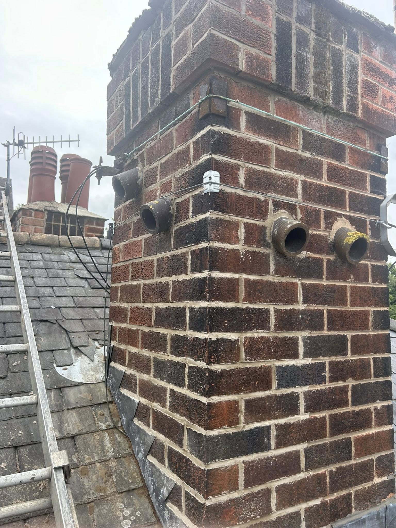 Repoint and restore chimney brickwork to prevent moisture ingress and structural damage.